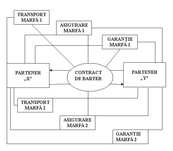 Barterul implica intr-o varianta mai evoluata antrenarea in relatie a mai multor factori si anume a unor companii de asigurare, a unor societati de transporturi si institutii bancare care garanteaza livrarea marfii printr-o scrisoare de credit de standby sau printr-o procedura directa cunoscuta asa cum rezulta si din figura nr. 2.