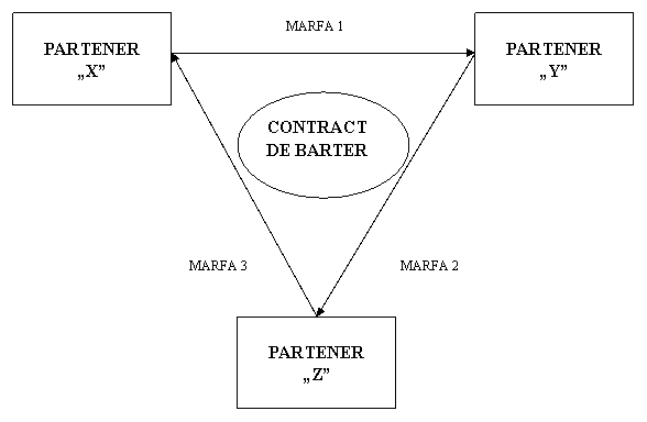 Referindu-se la barterul multilateral constatam ca acesta reprezinta o treapta normala in evolutia acestui gen de operatiuni si consta in aranjamente de schimb, intre trei, iar uneori chiar mai multi parteneri de afaceri.