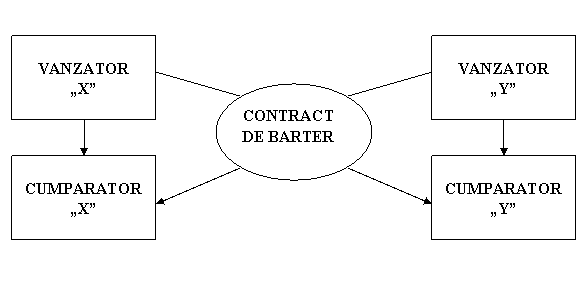 Prin urmare, se poate aprecia ca barterul este tipul principal acela mai amplu de comert in contrapartida. In cadrul acestui tip de aranjament, cele doua parti contractate convin decat asupra valorii produselor (sau serviciilor) care urmeaza sa faca obiectul schimbului. Acordurile de barter sunt consumate intr-o scurta perioada de timp, de regula sub un an, astfel incat fluctuatia preturilor internationale ale produselor schimbate sa nu favorizeze, unilateral o parte contractanta in raport cu cealalta. Atunci cand tranzactiile necesita o perioada de derulare completa mai mare de un an, se includ prevederi pentru ajustarea proportiilor preturilor internationale ale produselor de schimb in care are loc tranzactia de barter, tocmai pentru a anihila fluctuatiile preturilor pe pietele internationale.