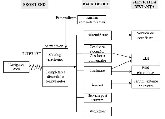 Pe langa infrastructura fizica, comertul electronic are nevoie de componente software atat la dispozitia furnizorului, cat si a clientului. Astfel, facand o sinteza a aspectelor prezentate anterior, in arhitectura software se regasesc urmatoarele componente, redate si in figura 1.7