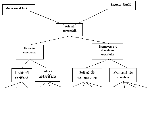Instrumentele utilizate de politica comerciala sunt: mijloace tarifare (politica tarifara); mijloace netarifare (politica netarifare); mijloace de promovare si de stimulare (politica de stimulare).