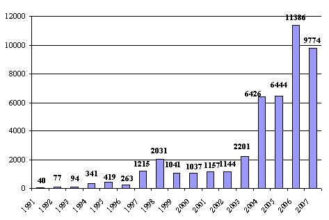 Figura nr. 3 Evolutia ISD in Romania in perioada 1991-2007 (mil.USD)