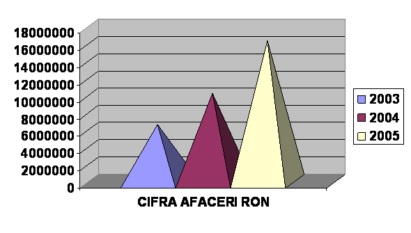 cifra de afaceri s-a mentinut intr-o crestere constanta de aproximativ 30 % pe an , astfel incat daca in anul 2001 ea era de aproximativ 2 milioane de euro, ea a ajuns anul trecut la peste 4 milioane de euro;