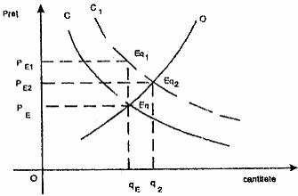 qe,qe1,qe2-cantitatile pentru care se realizeaza echilibul initial qe, echilibrul in urma cresterii cererii qe1, si prin reducerea cererii qe2.