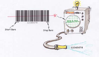 codul de bare intr-un impuls electric pe masura ce fascicolul trece pe deasupra