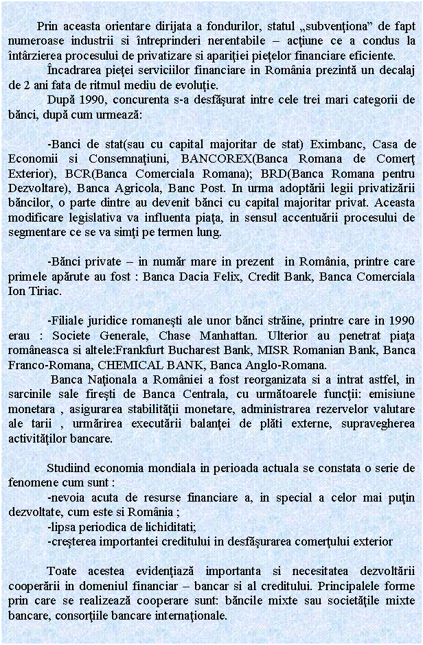 In ceea ce priveste comertul exterior bancile se implica atat in operatiunile de plata, cat si in cele de creditare si finantare ale acestuia.