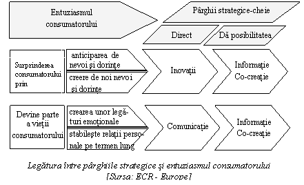Entuziasmul consumatorului este o noua frontiera, permitand organizatiei sa-si diferentieze oferta fata de competitie, inclinand spre stocul de marci patentate si spre inovatii directe. Creand valori adaugate pentru consumatori, emotionalizand oferta, cladind relatii personale, crescand curiozitatea si surprinzand consumatorii, realizeaza o legatura superioara, trainica, in ceea ce-i priveste.