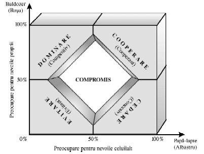 Reamintim ca, in grafic, la originea celor doua axe, este plasata tendinta negociatorului de a ramane pasiv, a evita angajamentul in rezolvarea problemei si a lasa totul balta.
