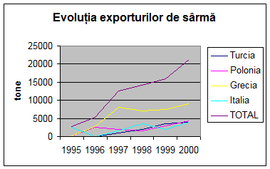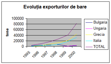 De asemenea se remarca cresterea continua a exportului de bare in Ungaria, fiind necesara o preocupare in continuare pentru mentinerea acestei tendinte. Rezultate similare avem si pentru Bulgaria, deoarece incepand cu anul 2000 exportam cca. 350 tone/luna.