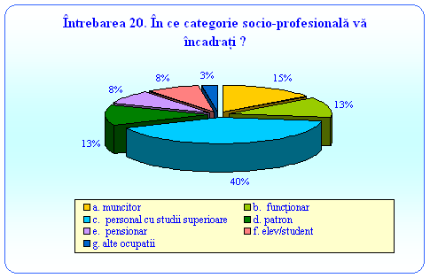 Intrebarea 20. In ce categorie socio-profesionala va incadrati ?