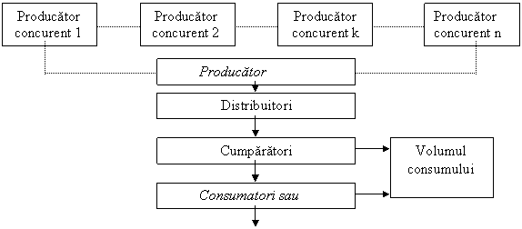 e) producatorii concurenti sunt cei care realizeaza bunuri economice asemanatoare, influentand volumul vanzarilor pe o anumita piata prin comportamentul lor strategic, prin gama de produse oferite, preturile practicate, distributia diferita si promovarea proprie.