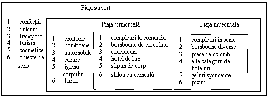 3. piata suport, reprezentata de ansamblul produselor care au legatura directa cu produsul principal si fara de care acesta nu si-ar gasi utilizarea finala, in ultima instanta justificarea crearii sale;