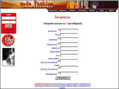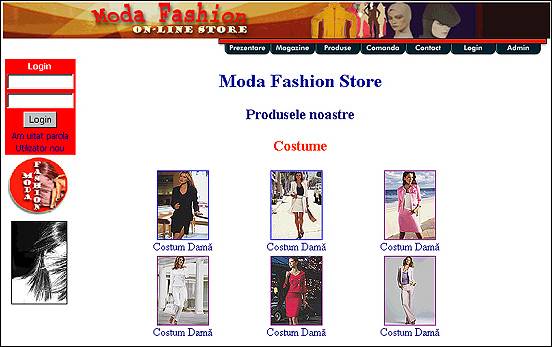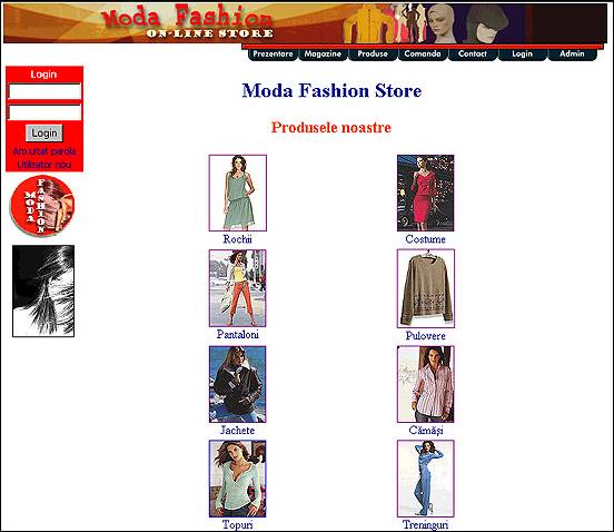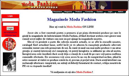 Site-ul proiectat are ca obiectiv promovarea si vanzarea on-line de produse de imbracaminte ce se afla in stocul magazinului Moda Fashion. Fiecare vanzare va fi precedata de o comanda, care va trebui confirmata pentru ca livrarea sa aiba loc. Confirmarea se va face prin e-mail, astfel ca serverul pe care magazinul va fi instalat va trebui sa fie capabil sa trimita si sa receptioneze e-mail-uri.
