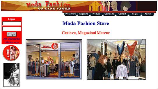 Vizitarea propune mai multe pagini, printre care cea de start - index.php - care prezinta magazinul virtual, cea de imagini din magazinul fizic si cea a catalogului, pagini ilustrate in continuare:
