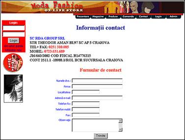 De asemenea, utilizatorul, chiar si cel neinregistrat va putea completa un formular de contact, in sectiunea contact.php