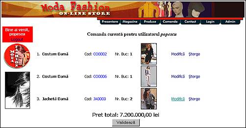 adica utilizator, precum si ale cosului de comenzi si ale comenzii, daca acestea au existat: