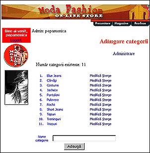 categorii - se pot adauga, modifica sau sterge categorii de produse