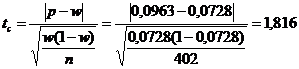 Cum 1,816 < 1,96, rezulta ca tc se afla in zona de acceptare a ipotezei nule, Ho, intre cele doua proportii diferentele sunt nesemnificative. Concluziile esantionului se pot extinde la nivelul ansamblului cercetat, cu o probabilitate de 95%.