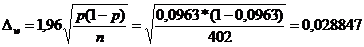 Exista 95% sanse, ca proportia reala a subiectilor care au caracteristica cercetata aici, care cumpara produse de la S.C. Alro S.A. sa fie cuprinsa intre: 9,63% - 2,88% si 9,63% + 2,88%.