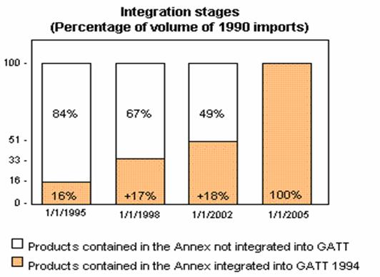 1961-se încheie un Acord pe termen scurt care prevedea aplicarea de contingente la importurile de textile din bumbac ca exceptie de la conduita GATT;