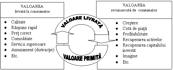 VALOAREA RECUNOSCUTA (DE CONSUMATOR) Feed-back-ul dat intreprinderii de realizarea nevoilor consumatorului, ca o valoare superior livrata, ce este recunoscuta de consumator, si fiind criteriul relevant pentru a realiza entuziasmul consumatorului.