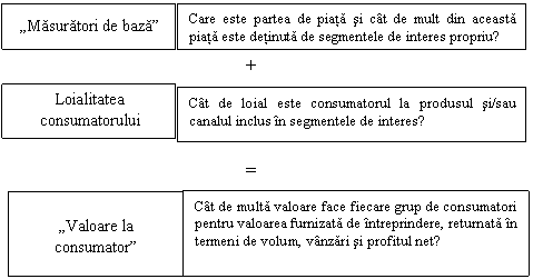 Valoarea primita de consumator poate fi monitorizata prin: rata de crestere, cota de piata, loialitate, penetratie, profitabilitate, imagine.