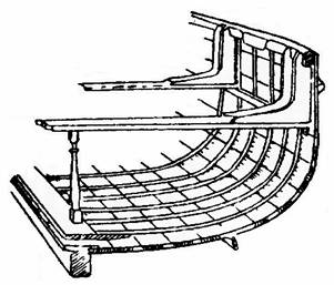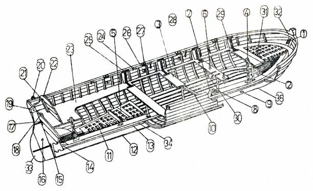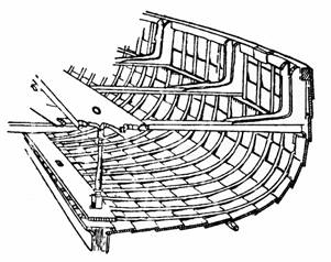 j) etamboul - este o piesa de lemn curbata sau dreapta ce se monteaza in continuarea chilei la pupa;