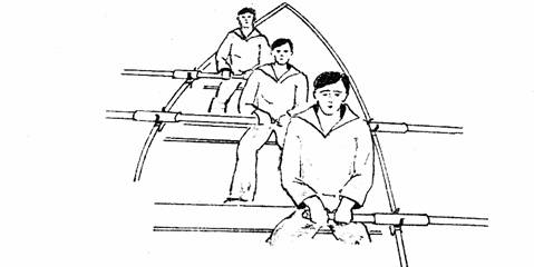 a) bancurile - sunt scanduri transversale pe care stau tragatorii. Ele sunt sustinute la centru de pontili;