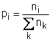 Probabilitatea pi (densitatea de probabilitate) se calculeaza cu relatia: