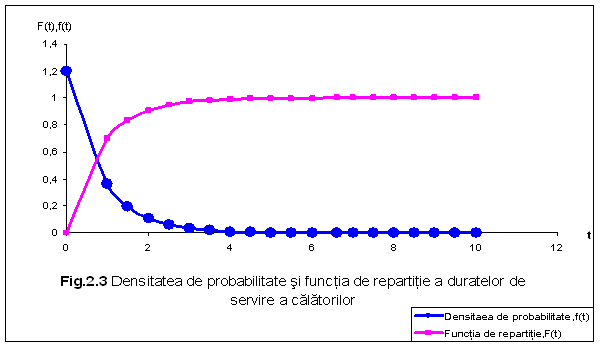 Reprezentarea grafica a densitatii de probabilitate si a functiei de repartitie corespunzatoare duratelor de servire a calatorilor este prezentata in fig 3