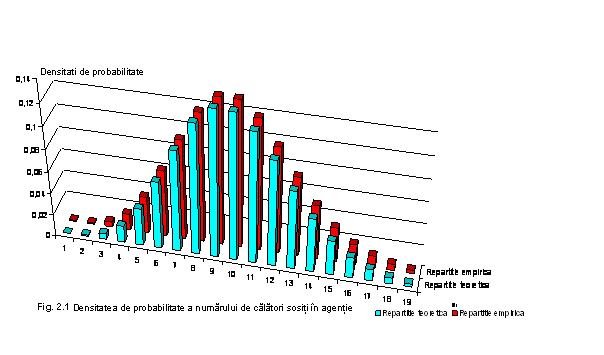 Tabelul 2 Densitatea de probabilitate si functia de repartitie corespunzatoare repartitiei Poisson si frecventelor teoretice de sosire a calatorilor