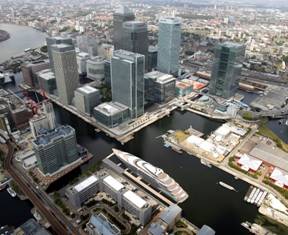 Centrul financiar Canary Wharf, Londra 1 1999. Jubilee Line. Statia de metrou Canary Wharf, Londra - vedere aeriana2