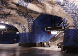 Municipalitatea orasului Stockholm a intuit inca din 1955, potentialul statiilor de metrou de a fi mai mult decat un mijloc de transport. Oficialitatile orasului au incurajat pictorii, sculptorii, arhitectii si inginerii sa-si uneasca fortele pentru a face statiile de metrou atractive si stimulante , "catedrale subterane" cu " fanfare de ritm si culoare".