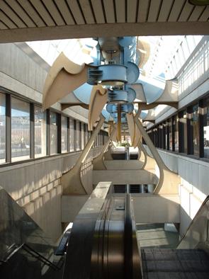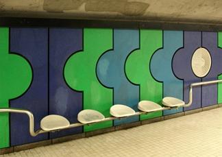Un alt exemplu elocvent este staia de metrou Hankar din Brussels. Peretii si tavanul sunt decorate cu o pictura viguroasa, executata in culori luminoase, stridente. Puterea frapanta de comunicare a acestei opere monumentale, " Notre temps ", de Roger Somville, o ajuta sa nu fie coplesita de arhitectura alcatuite din volume grele in beton.