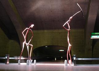 Statiile-grote ce alcatuiesc o treime din numarul total al statiilor de metrou din Stockholm, sunt un exemplu remarcabil de colaborare intre arte. Fiecare statie este diferita de celelalte, tot ce au in comun fiind caracterul de grota. Istoria sportului este tema principala in decorarea statiei Stadium. Stilul este foarte direct si tema este prezentata intr-o maniera ce nu poate fi interpretata. Este greu de imaginat ca un calator sa coboare la statia gresita, chiar daca nu-i poate citi numele.