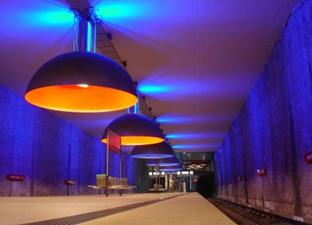 Statia Westfriedhof (1998) este impresionanta prin stilul extrem de simplu al peretilor de beton, lasati nefinisati si conceptul exceptional de iluminare realizat de designerul Ingo Maurer. Culoarea luminii folosite completeaza de asemenea saracia peretilor.