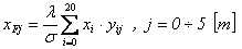 f1=8,33 LDWL+254; f2=3,70 LDWL+113; f3=0,93LDWL+28,5; f0=0; f5=1,85 LDWL+56,5; f6=7,48 LDWL+226; f7=16,66 LDWL+508;