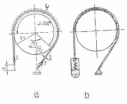 Schema cinamatica de principiu a mecanismului pentru ambele variante de infasurare a cablului este indicata in figura 2, in care s-au facut urmatoarele notatii: