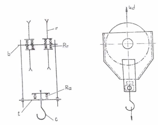 Pentru cele doua variante rezultatele sunt date in tabelul IV.1. Pentru ambele variante se alege carligul din STAS 1944 - 80, functie de grupa de functionare M4, sarcina de ridicare Q = 12,5 tf si materialul carligului (clasa de rezistenta P), carlig: