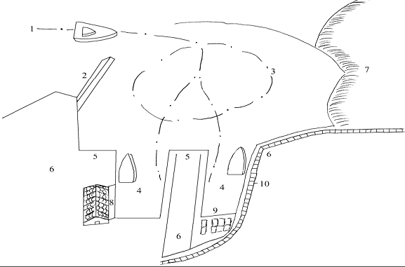 Portul cu doua diguri convergente spre larg este alcatuit din urmatoarele elemente: