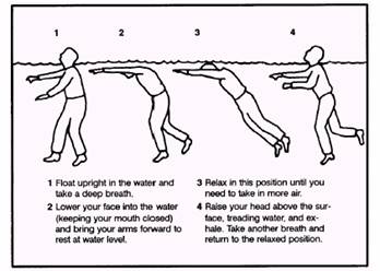 -Va apuca manerele de pe bordaj si apoi se va trage cu ajutorul fortei bratelor pana ajunge pe pluta