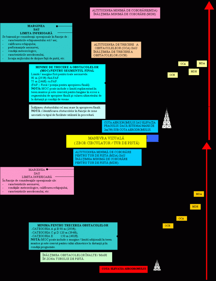v Minimele au fost determinate / stabilite pentru fiecare a / d pe baza terenului inconjurator si a mijloacelor disponibile de radionavigatie si apropiere, cat si pentru fiecare categorie de aeronave in functie de viteza de apropiere pe finala.