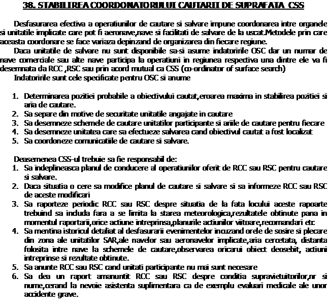 of surface search - CSS) trebuie sa foloseasca metoda cea mai buna de salvare si sa indrume nava sau navele cel mai adecvat echipate catre locul sinistrului.