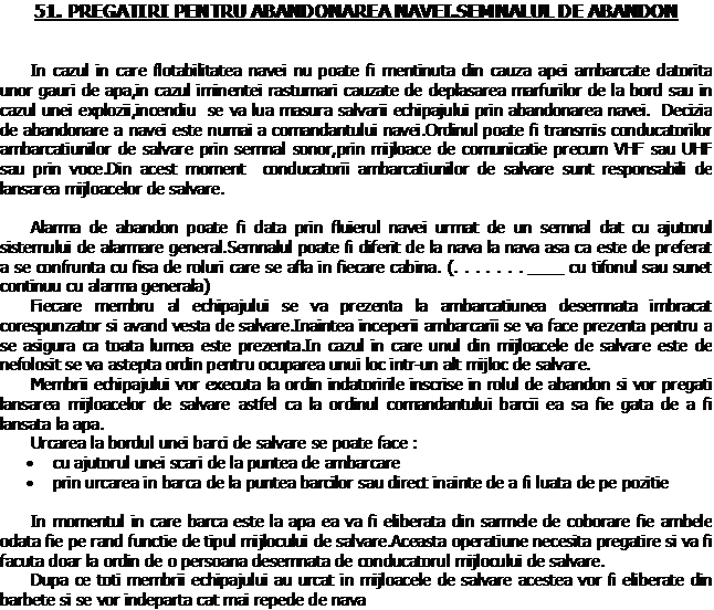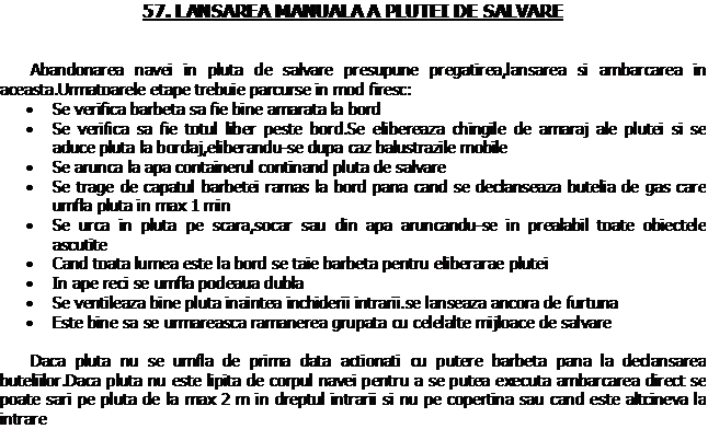7. LANSAREA BARCII DE SALVARE PE VREME REA