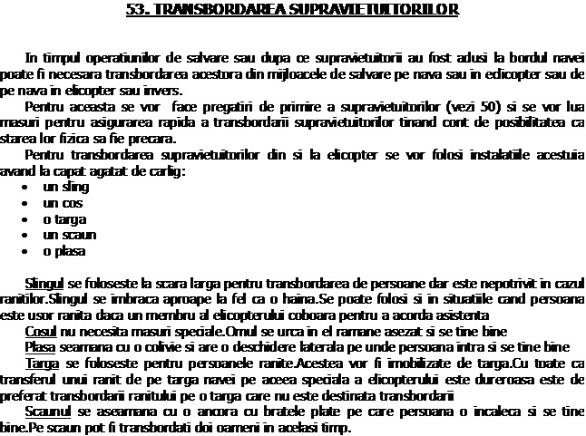 pregatire medicala sau pentru transferul lor pe nave care poseda cadru medical.
