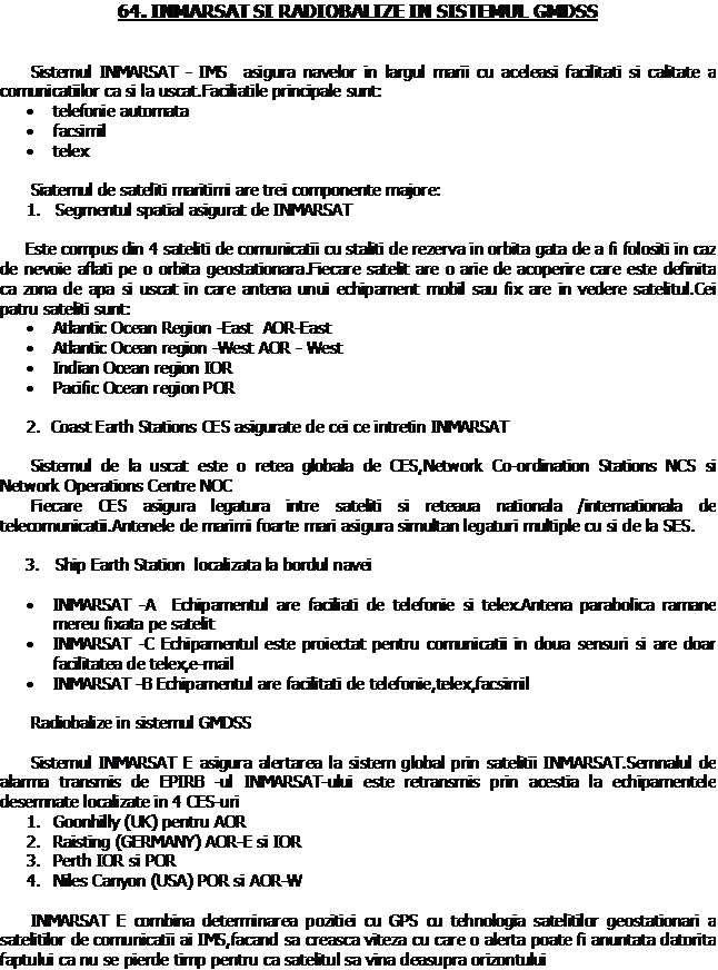 in functie de densitatea traficului.In astfel de situatii rolul statiei de coasta CRS este deosebit de important deoarece ei sunt intr-un contact permanent cu autoritatile de cautare si salvare de la uscat.