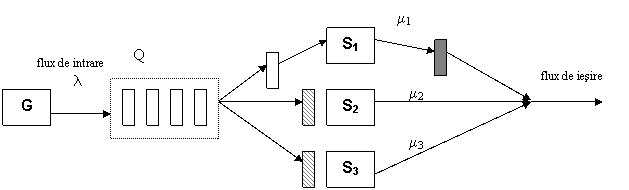 Fig. 1 Sistem de servire in masa cu sir unic de asteptare si statii dispuse in paralel