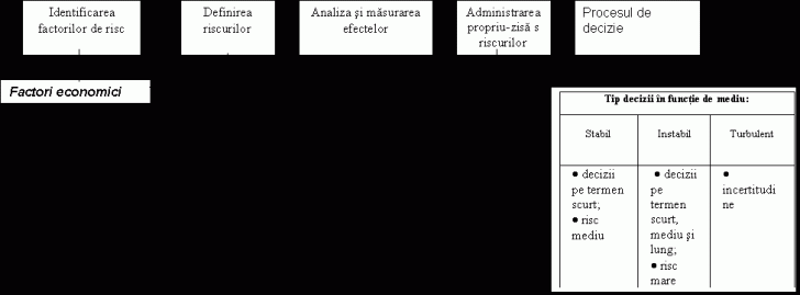 - riscuri "speculative" - legate de deciziile care se iau in intreprindere, constituind evenimente cu o prababilitate de aparitie cu atat mai mare, cu cat procesul de extindere a intreprinderii este de dimensiuni mai mari.