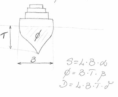 D=LBTδ Daca la acesti termeni se adauga si greutatea specifica a navei D se masoara in tone. (D este cu incarcatura sau gol)