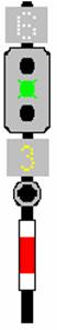 c. Semnalul luminos urmator este pe verde sau verde clipitor. Indicatia are aspectul din Fig. 8.3